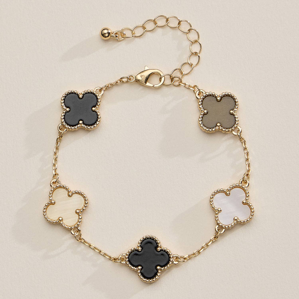 Brighten up your jewelry collection with this vibrant shell charm bracelet, featuring high-shine shell inlays framed in elegant gold beaded detailing. Each charm boasts a soft, symmetrical silhouette that brings a playful yet polished touch to your everyday look. Crafted with natural shell and a durable gold-tone chain, this bracelet is designed for both comfort and style. The adjustable clasp ensures a perfect fit for most wrists, while the variety of rich colors makes it ideal for stacking, gifting, or wearing as a standout solo piece. Product Features: ● Materials: Natural shell & gold-tone alloy ● Design: Smooth shell inlays with beaded gold accents ● Fit: Adjustable chain with lobster clasp ● Style: Elegant, colorful, boho-chic ● Lightweight & comfortable for daily wear ● Ideal for: Layering, gifting, casual or dressy outfits Why You'll Love It: ● Made from shimmering natural shell ● Unique and vibrant charm design ● Adjustable fit suits most wrist sizes ● A thoughtful gift...