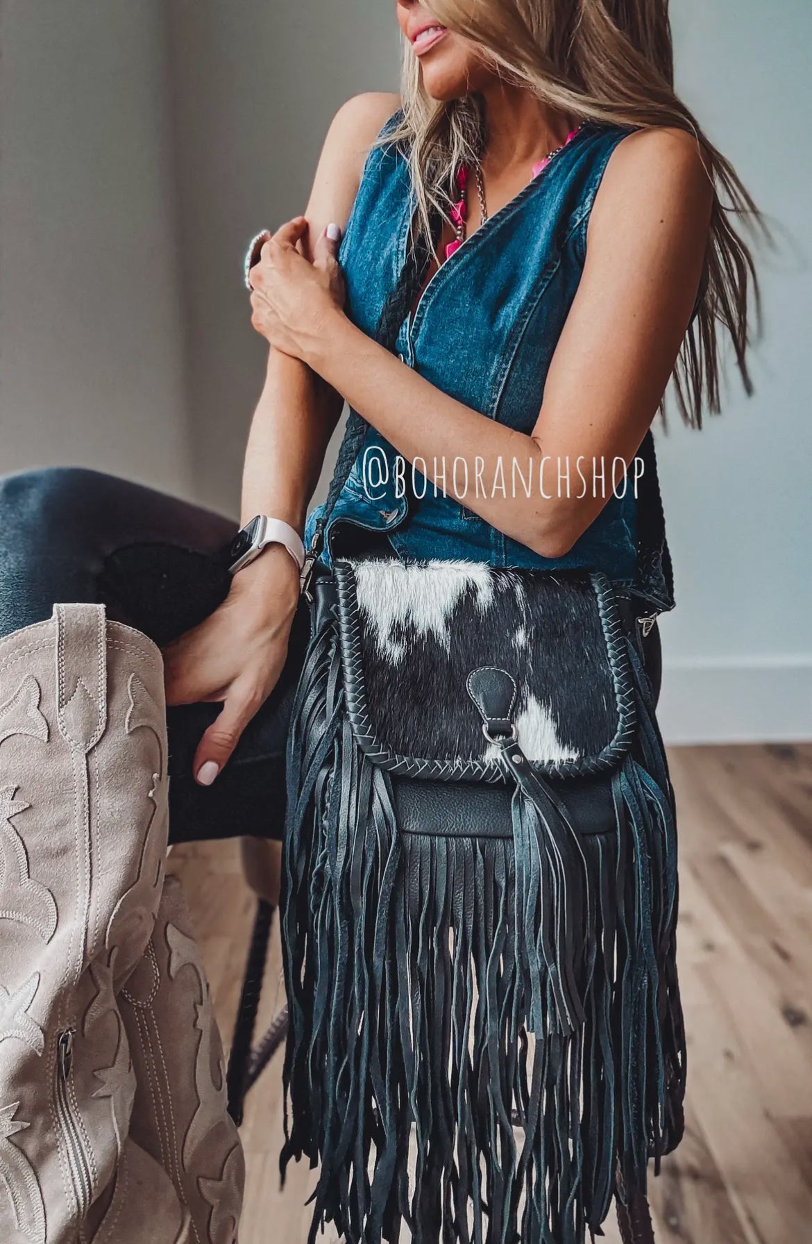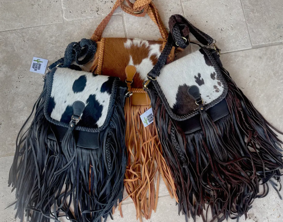 The Nancy Crossbody Genuine Hairon Cowhide Leather Tassel by Boho Ranch