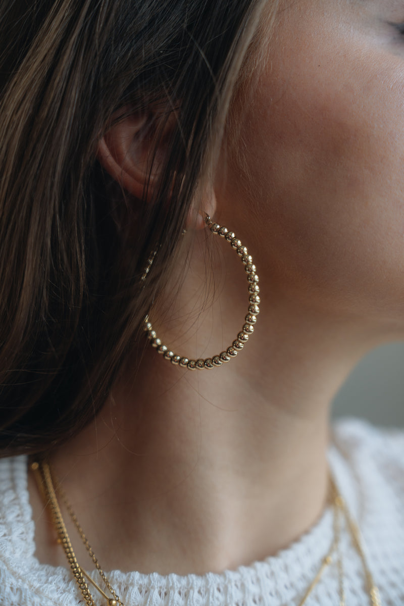 18k Gold Filled Beaded Hoop Earrings Luxus Accessories (50mm)