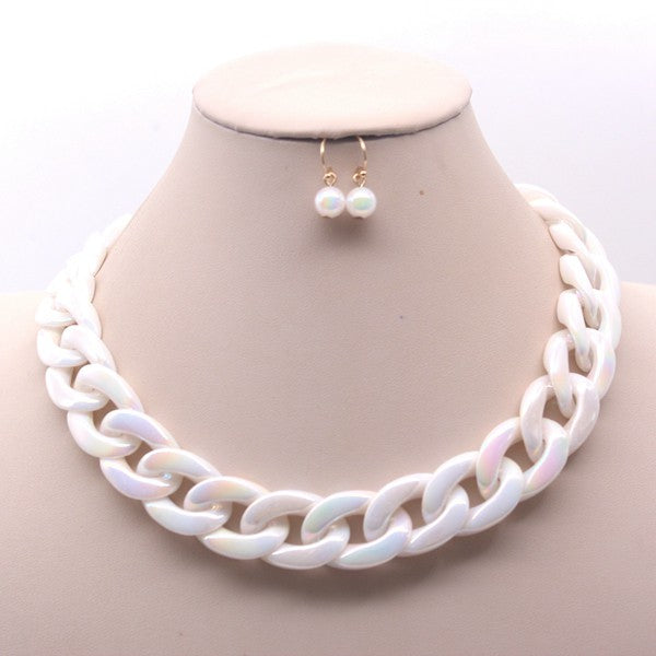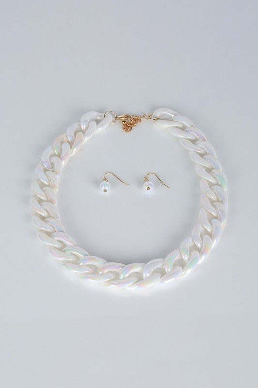 STATEMENT WHITE CHAIN NECKLACE AND EARRING SET