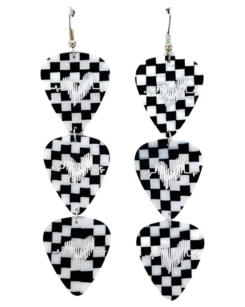 Checkerboard Triple Guitar Pick Earrings Groupie Love