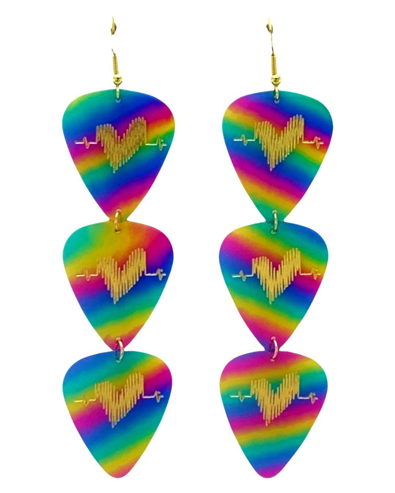 Rainbow Triple Guitar Pick Earrings Groupie Love