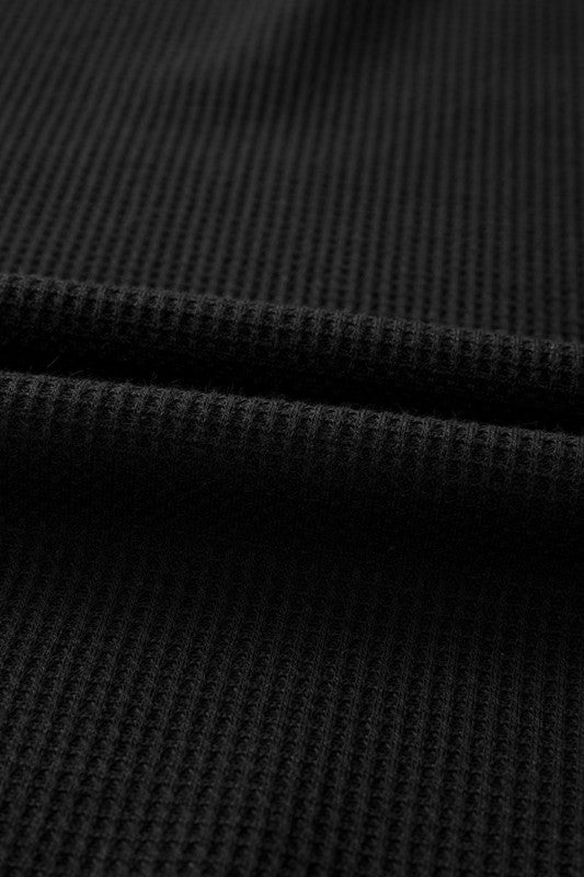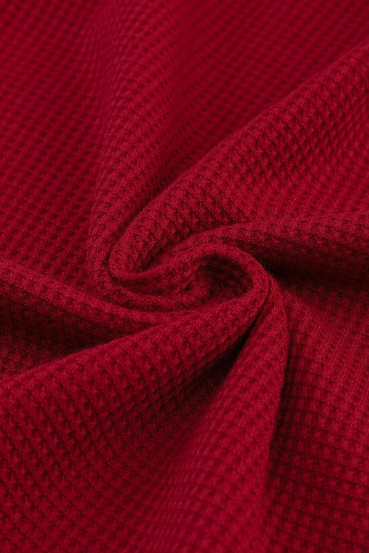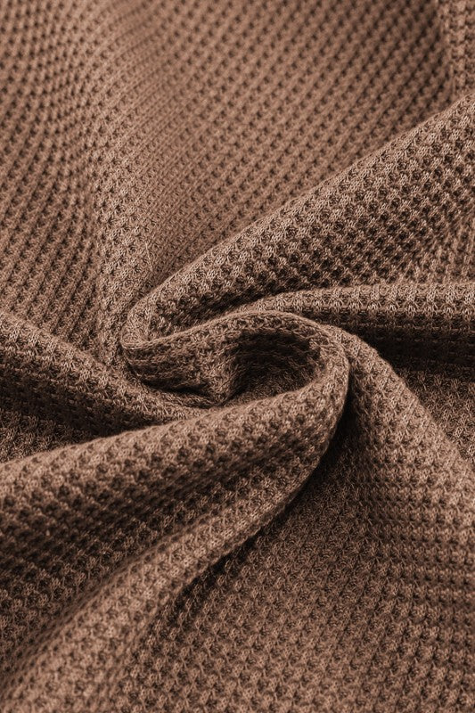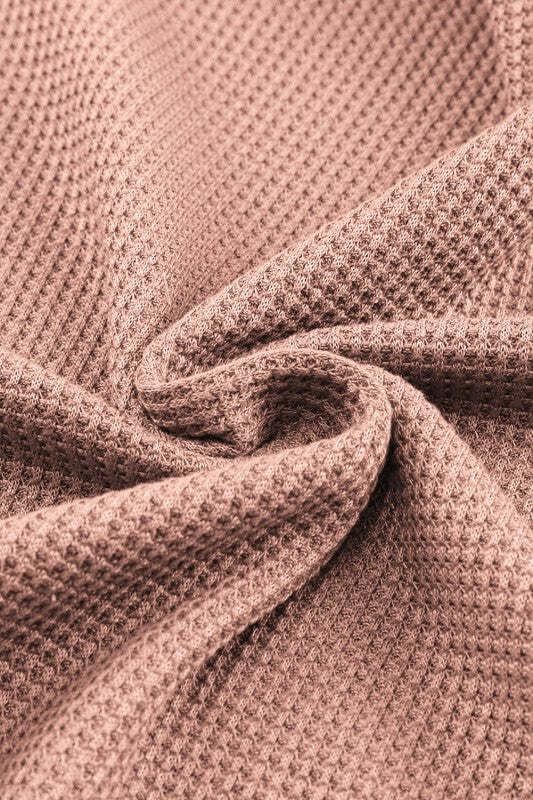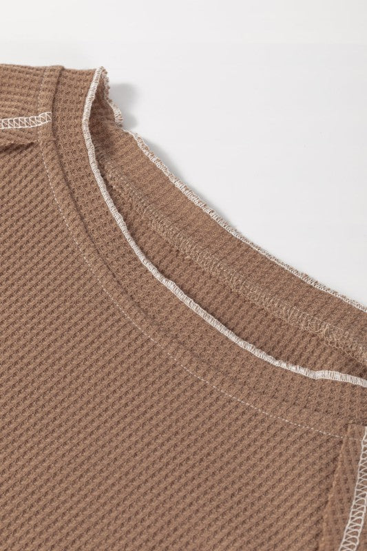 Solid Waffle Knit Round Neck Long Sleeve Top