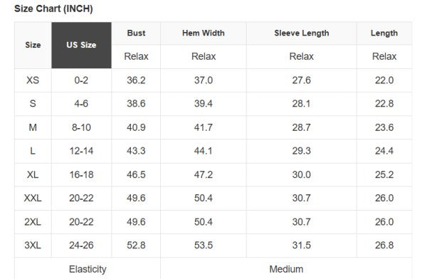 See size chart for approximate measurements