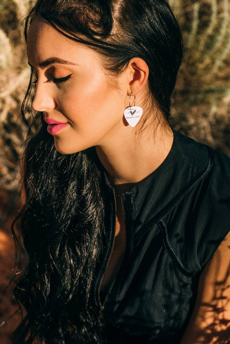 Freedom Rocks White Pearl Hoop Guitar Pick Earrings Groupie Love (25mm)