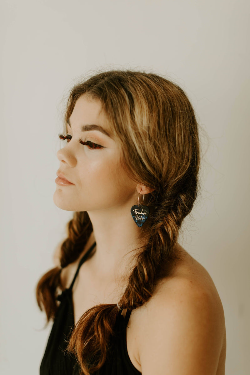 Freedom Rocks Blue Pearl Hoop Guitar Pick Earrings Groupie Love (25mm)