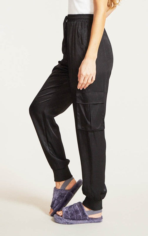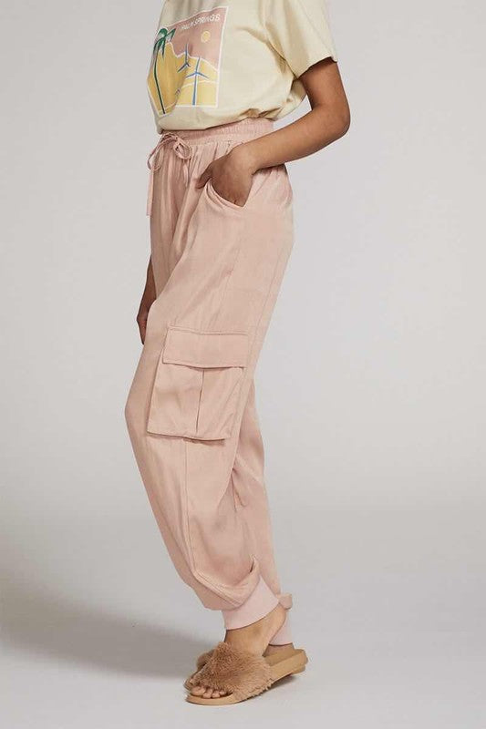 Textured Satin Cargo Pants By Miss Sparkling Multiple Colors