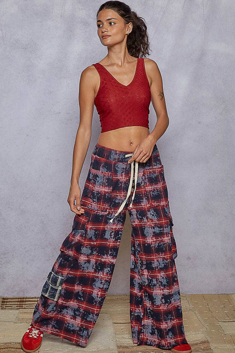 Tie Waist Plaid Cargo Pants Wide Leg by Pol