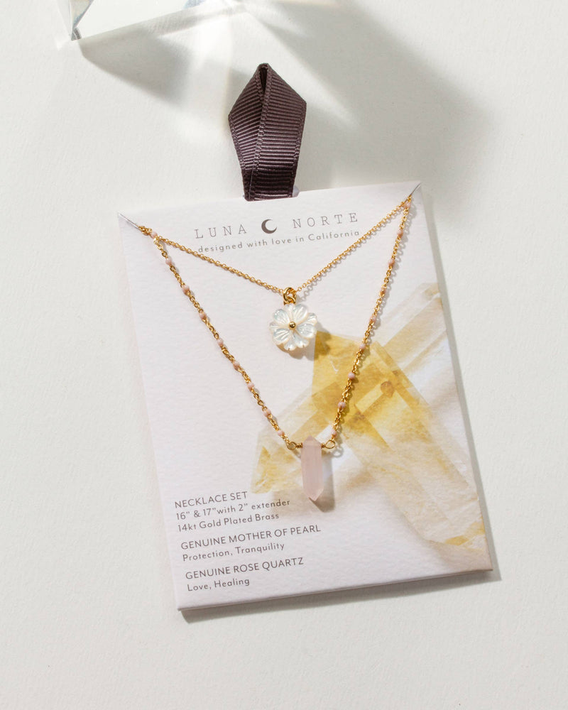 Luna Norte Blooming Crystal Layered Necklace Set- Rose Quartz