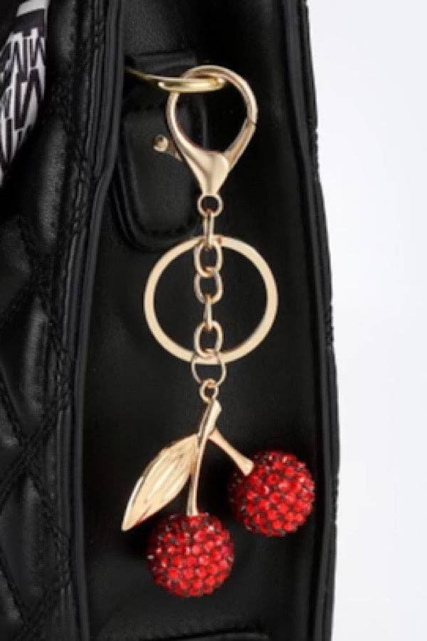 Red Cherry with Gold Leaf Purse Charm Key Chain