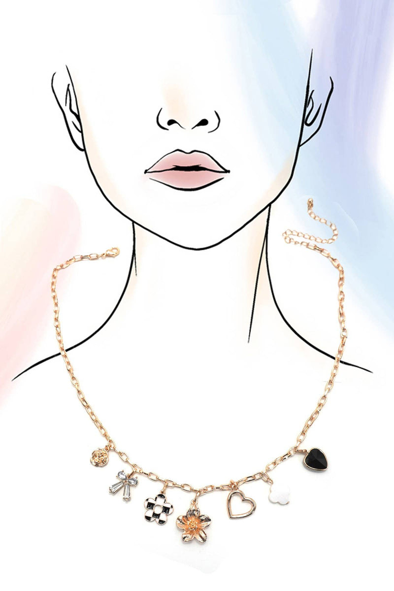 Gold Charm Necklace with Enamel Accents Elegant Minimalist Jewelry