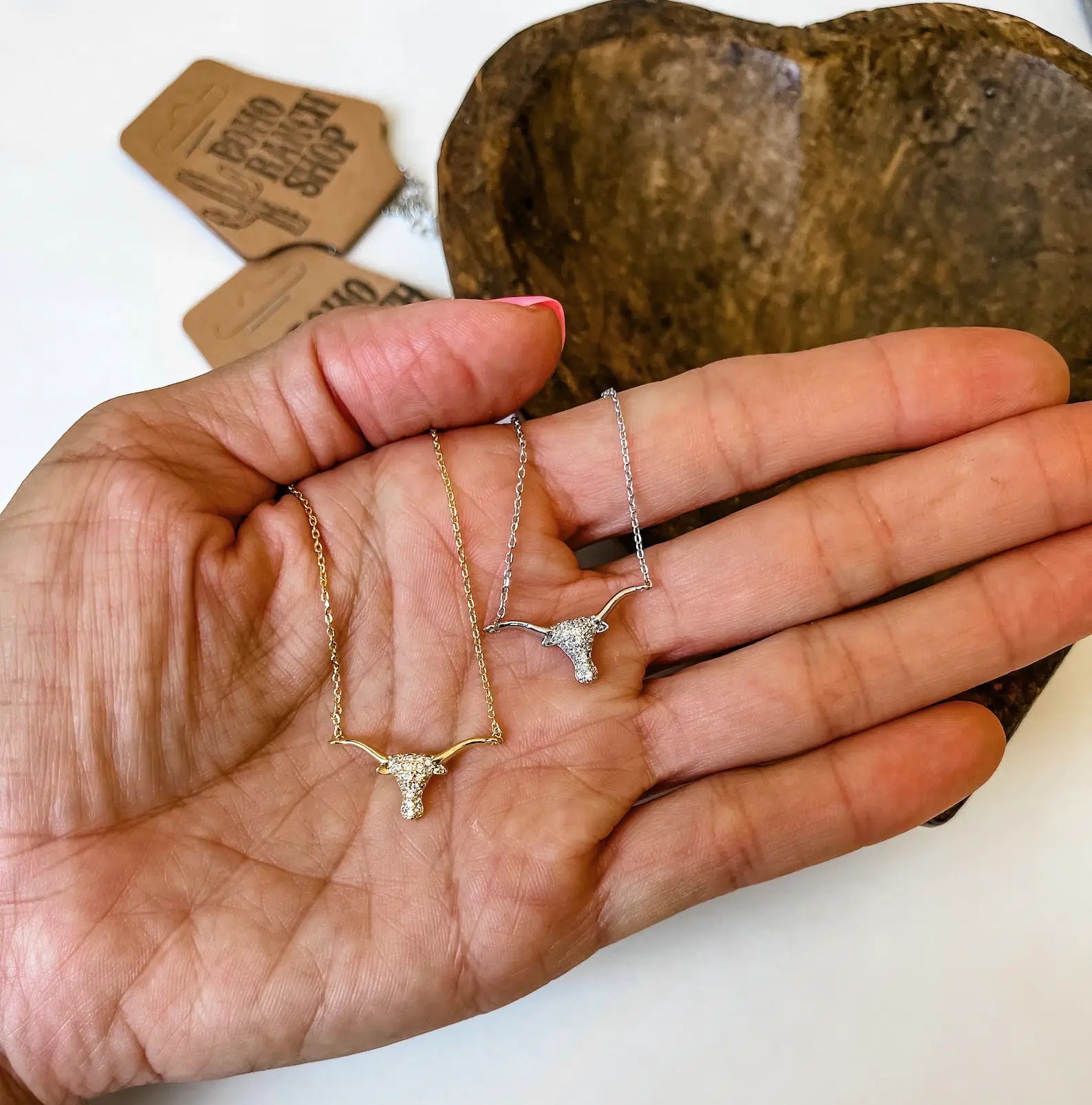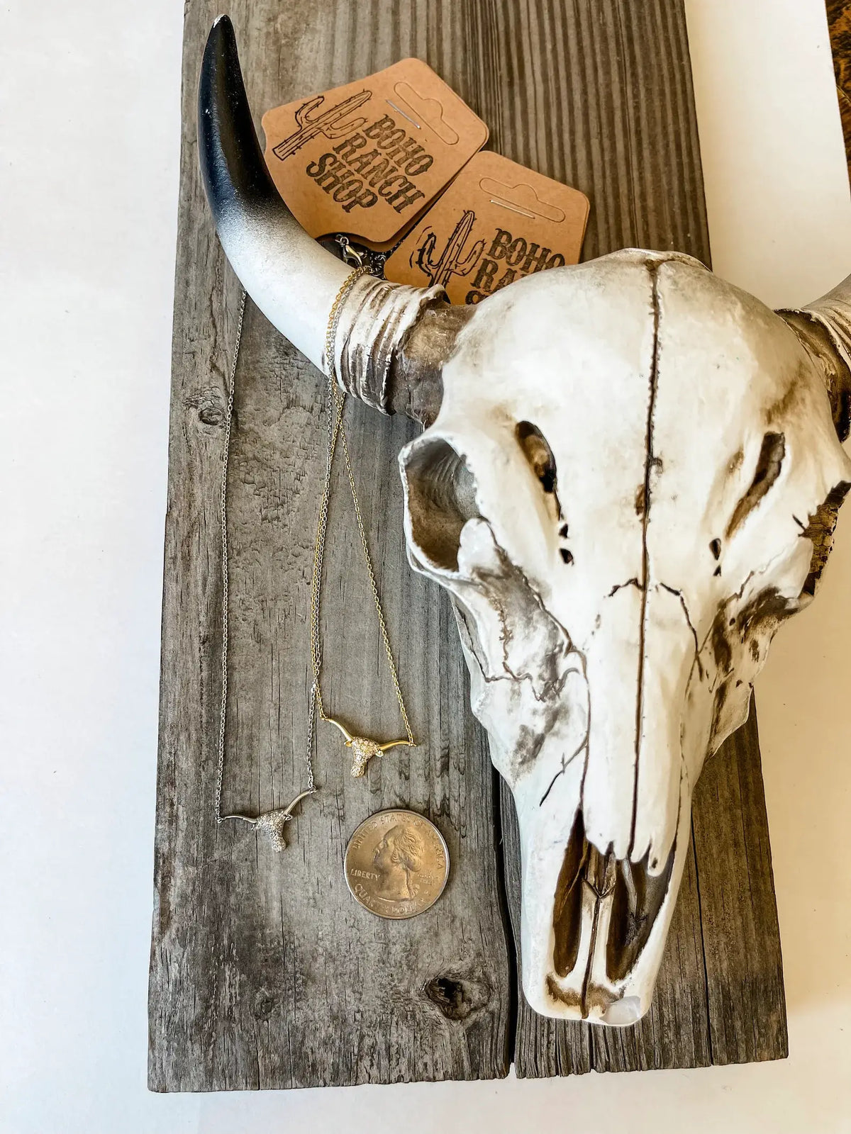 CZ Western Steer Dainty Necklace Cubic Zirconia
