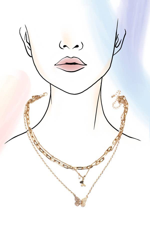 Multi Layered Butterfly Charm Necklace