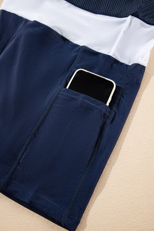 Make a splash with this swim dress that effortlessly blends style and function. The ribbed texture brings an elevated, polished vibe, while the playful color blocking keeps things fresh and modern. Slip your phone and essentials into the convenient pockets, no more leaving things behind at the beach. Lined throughout for a smooth, flattering silhouette that feels as good as it looks. Perfect for poolside confidence or seaside adventures. Polyester/Spandex
