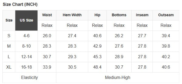 XL: (Waist), (Hips), (Inseam), (Length)