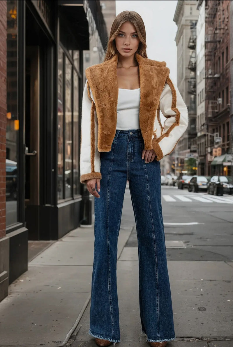 Wisteria Lane Contrast Fur Faux Suede Jacket