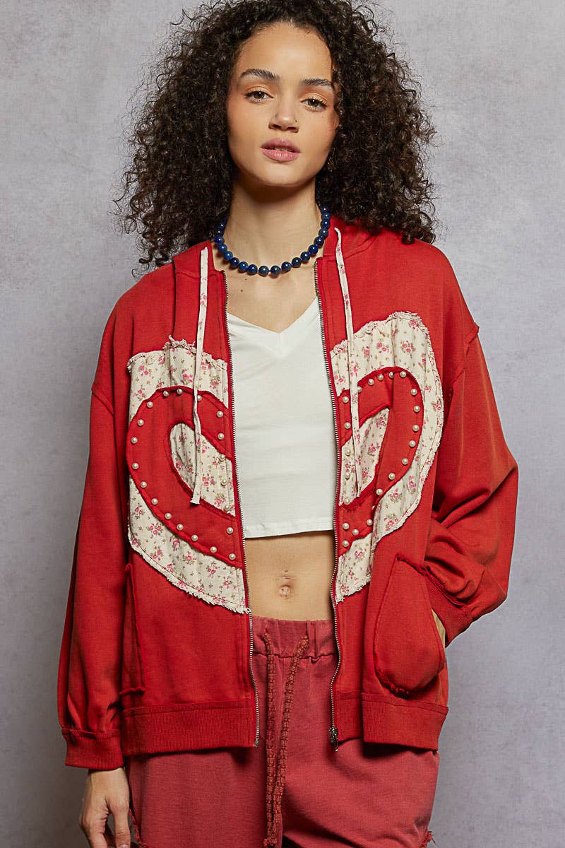 French Terry Long Sleeve Patch Zip Up Hoodie Knit Jacket