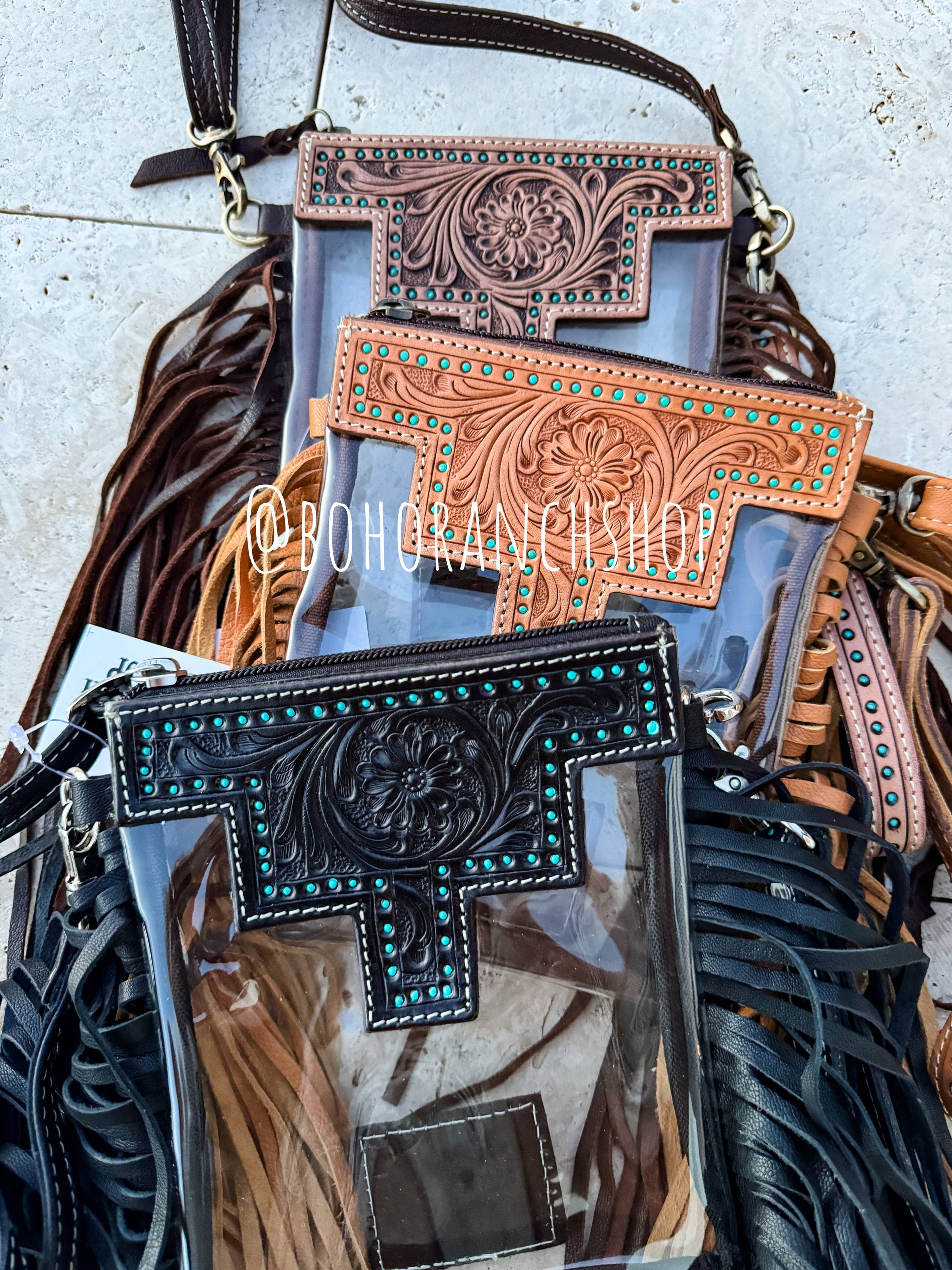 SHAYNE SMALL - Hand Tooled Clear Crossbody Concert bag