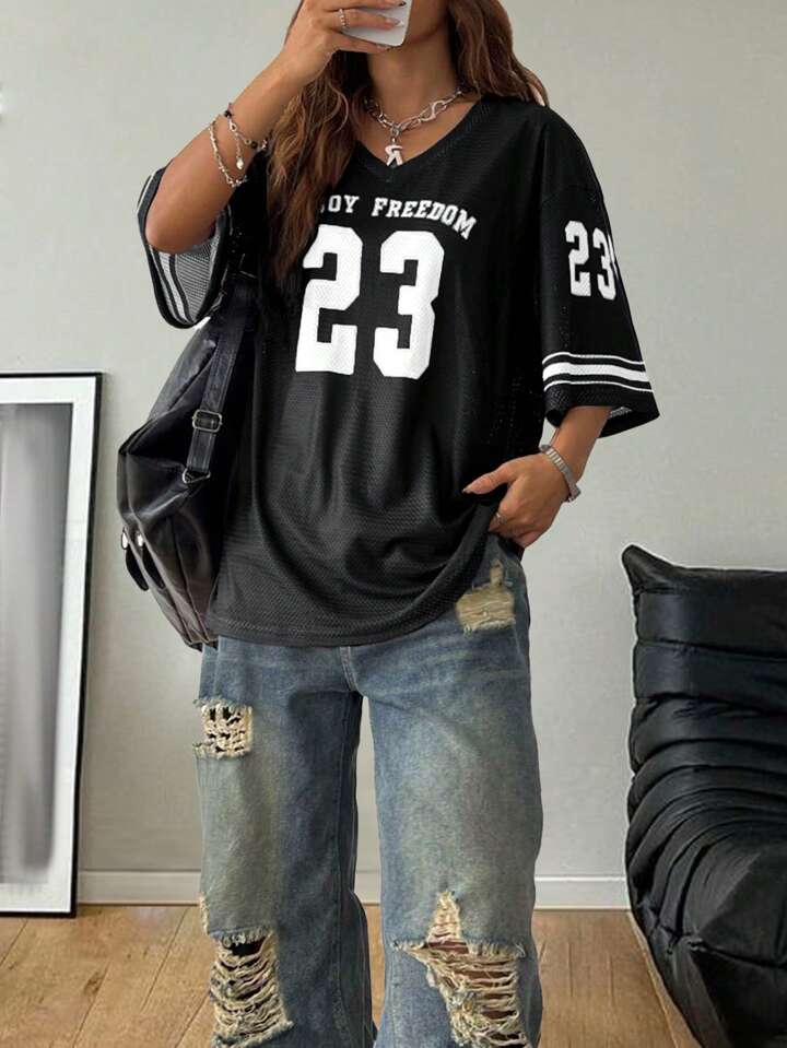 Black and White Enjoy Freedom Mesh Numbered 23 Jersey