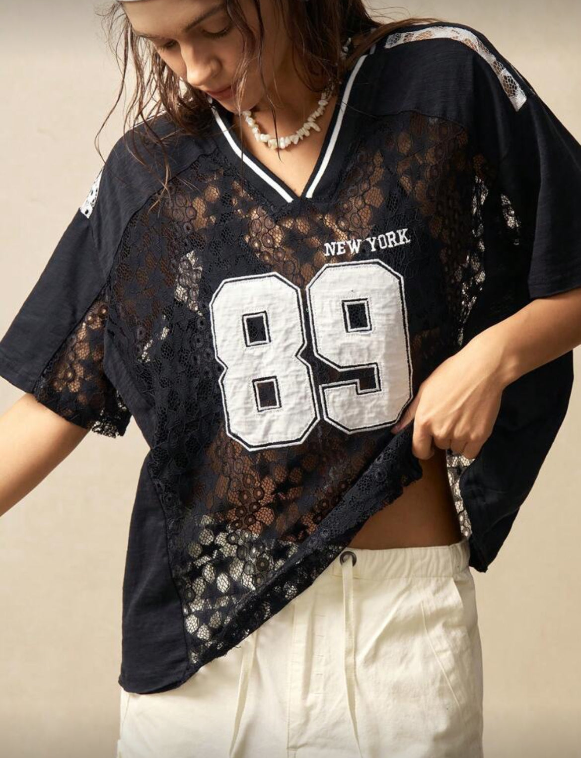 Star Lace Mesh Black Jersey Number 89 New York