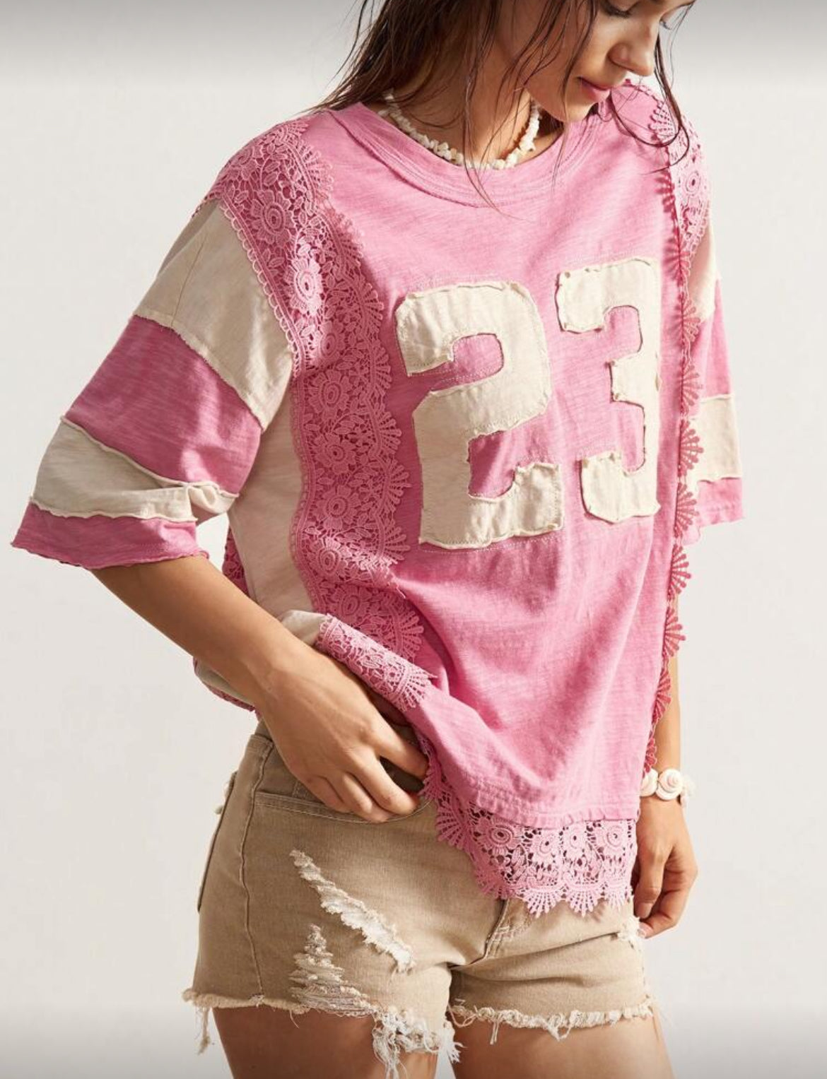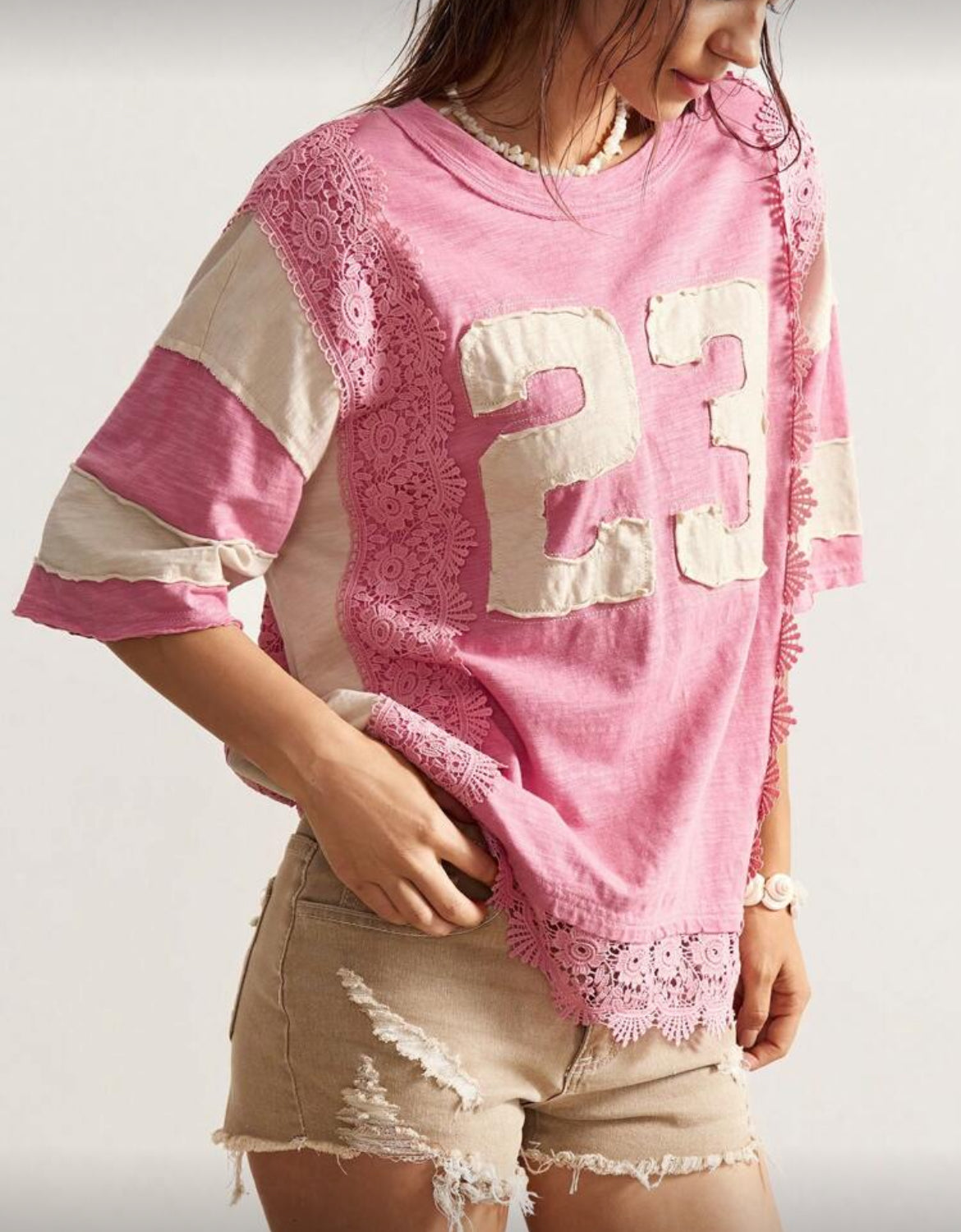 Add a touch of playful femininity to your wardrobe with our Pink Lace Jersey Number 23. Made with delicate lace and featuring the iconic number 23, this jersey will have you looking stylish and confident. Stand out from the crowd and show off your love for sports in a unique and quirky way.