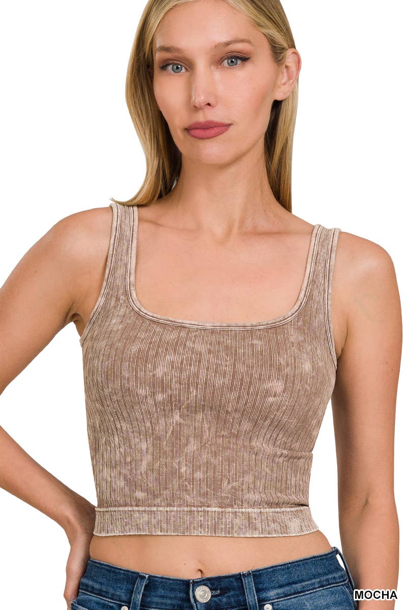 Washed Ribbed Cropped Tank Top Zenana (Mocha)