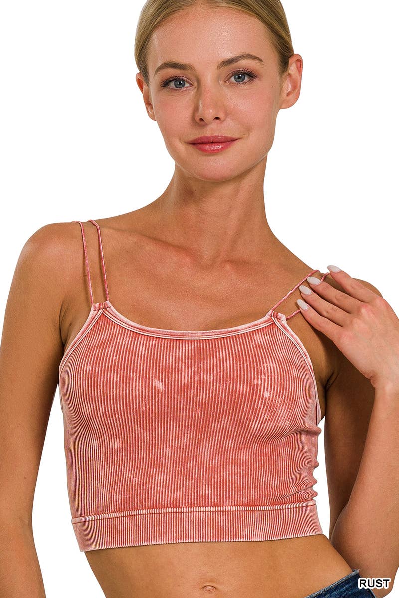 Washed Ribbed Seamless Double Strap Brami Zenana