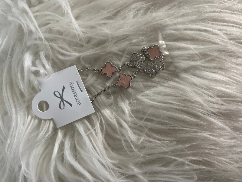Sliver Clover Pavé Mix Bracelet by Must Have (Peach)