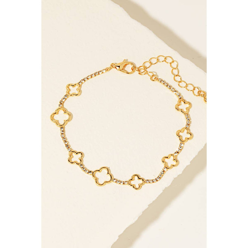 Rhinestone And Clover Chain Bracelet Anarchy Street (Silver)