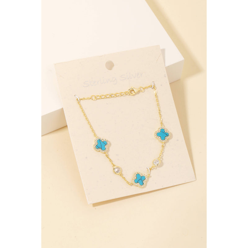 Sliver Clover Pavé Mix Bracelet by Must Have (Tiffany Blue)