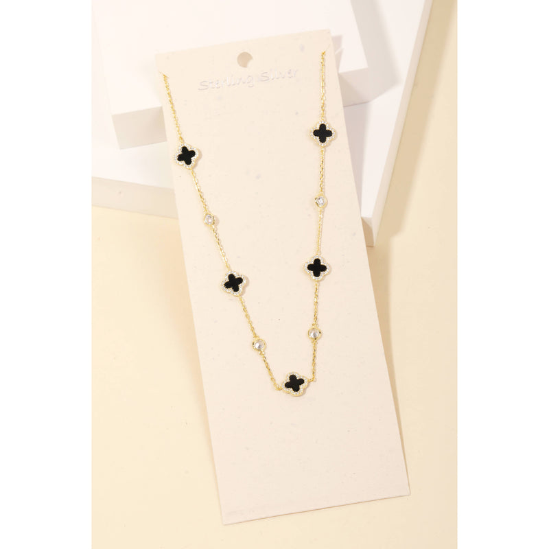Sterling Silver Clover Charm Necklace Anarchy Street (Black)
