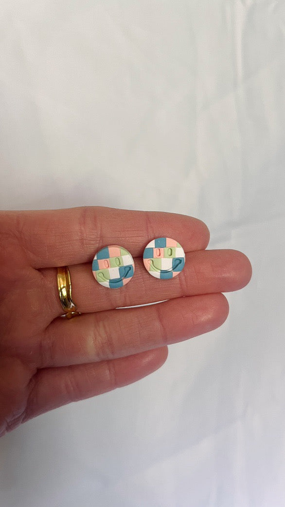 Ready, Set, Go! Checkered Photo Glass Earrings