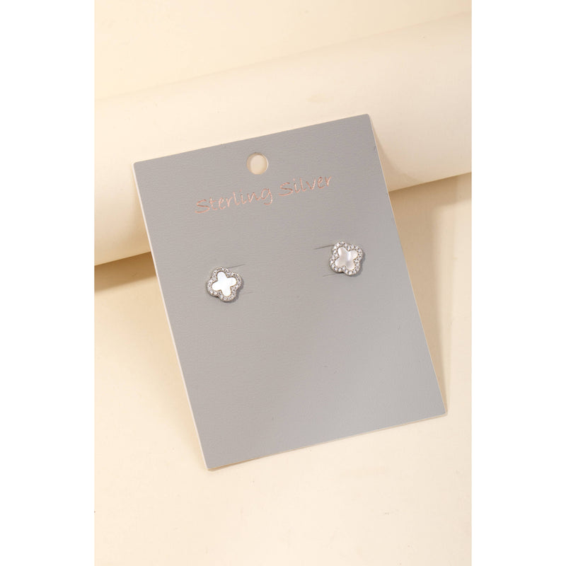 Sterling Silver Studded Clover Stud Earrings Anarchy Street (Silver White)