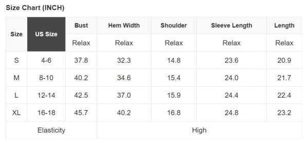 See size chart for approximate measurements.