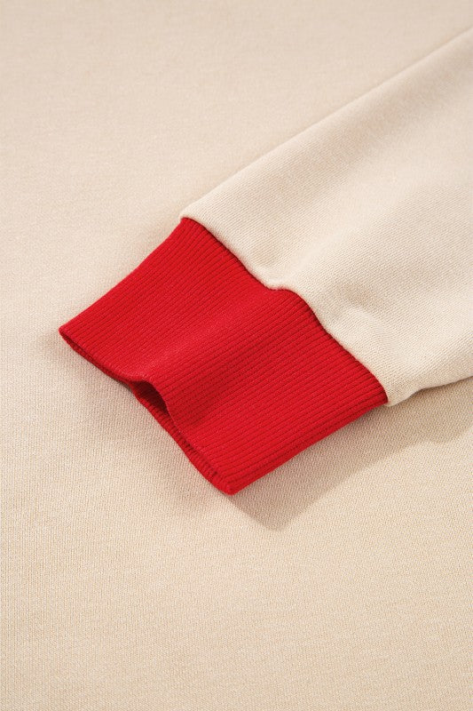 This sweatshirt combines classic varsity style with modern comfort, featuring a vintage letter graphic on the front. Detailed with striped banding at the neckline, hem, and cuffs, it offers a timeless sporty look. Crafted from a quality cotton blend, the loose, baggy fit ensures all-day comfort during game season or casual outings. Polyester/Cotton