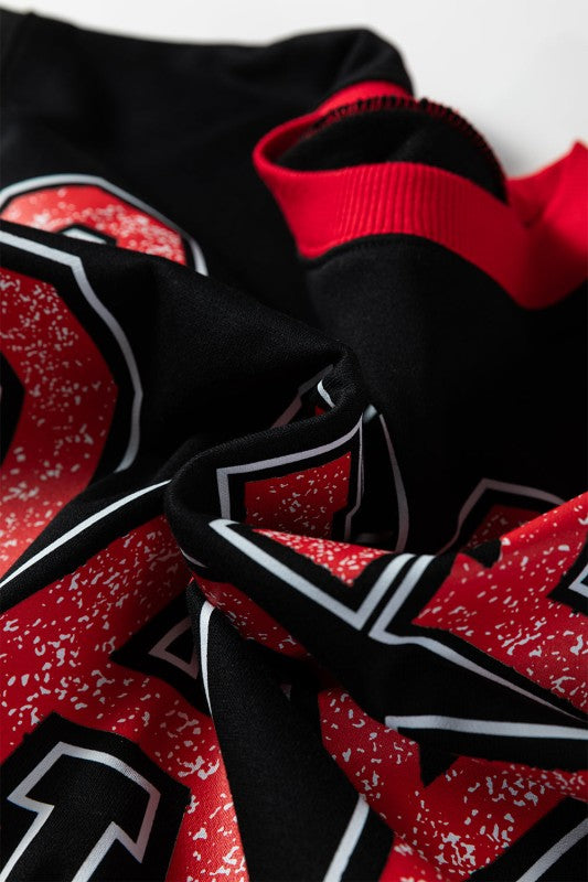 This sweatshirt combines classic varsity style with modern comfort, featuring a vintage letter graphic on the front. Detailed with striped banding at the neckline, hem, and cuffs, it offers a timeless sporty look. Crafted from a quality cotton blend, the loose, baggy fit ensures all-day comfort during game season or casual outings. Polyester/Cotton