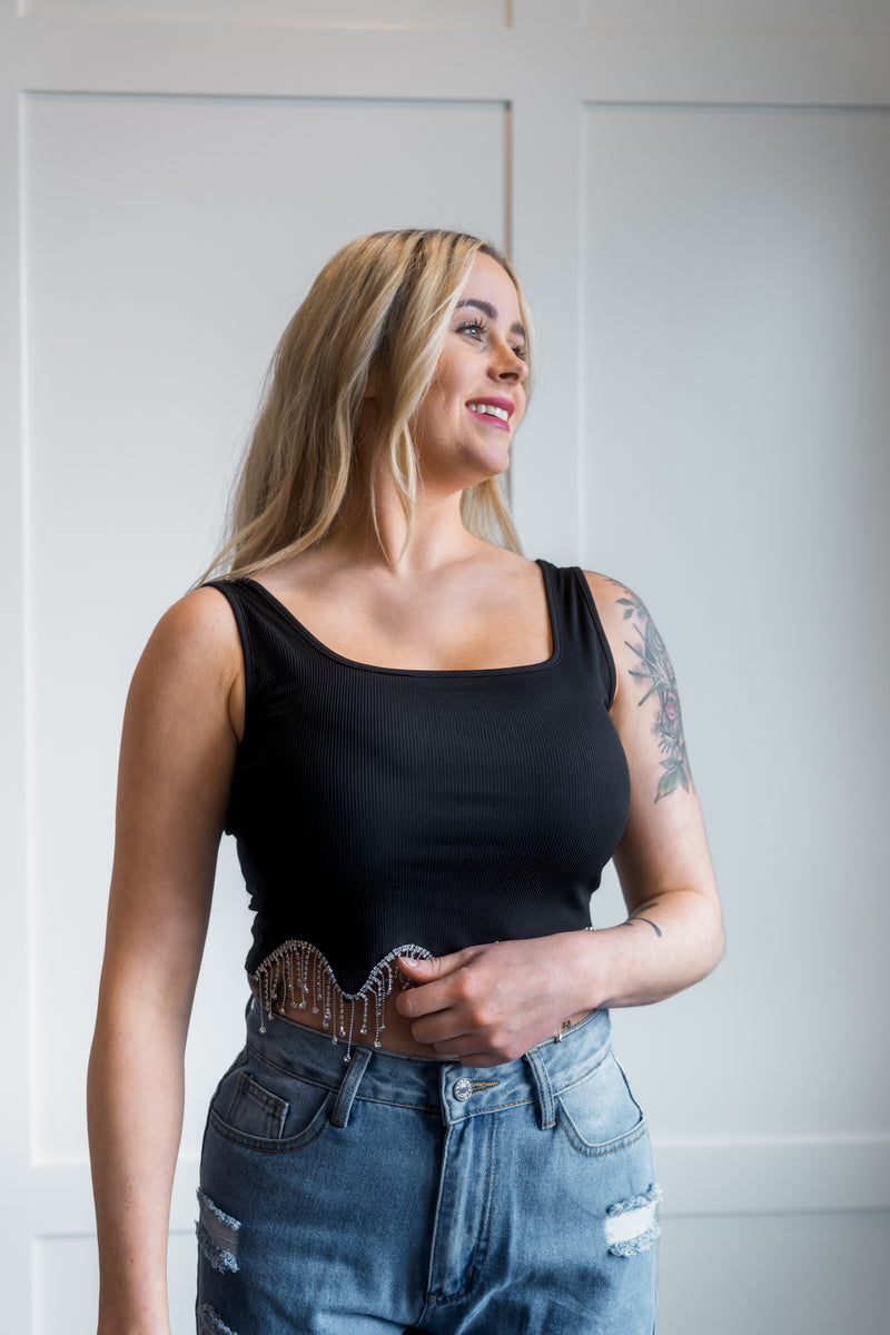 Plain U Neck Diamond Tassels Tank Top