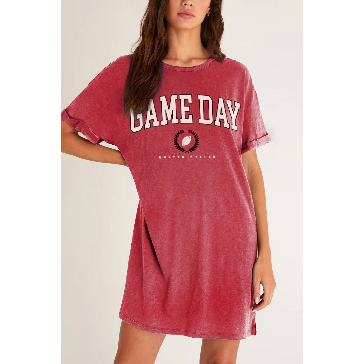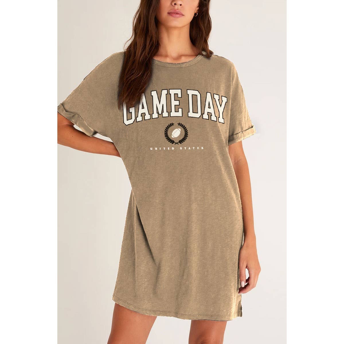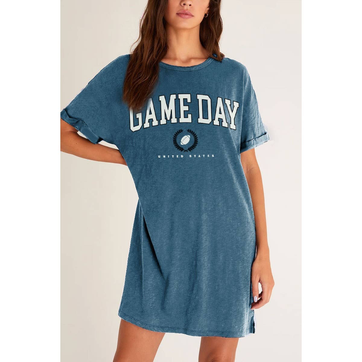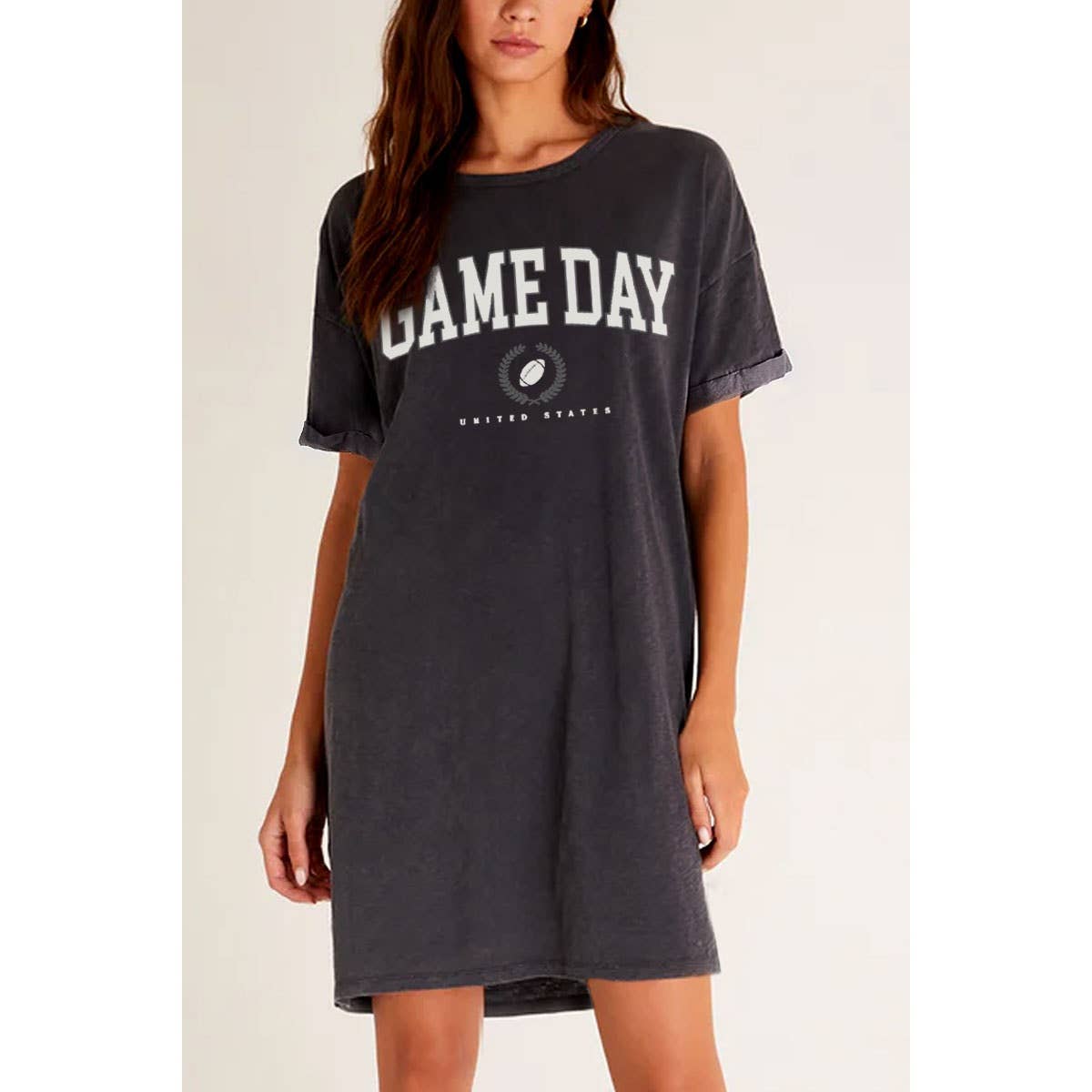 100% Cotton graphic knee length dress with an authentic vintage look and a softer feel that is only possible to achieve due to our special enzymes used to dye and mineral wash processes. - Loose fit - Washing Instructions: - Cold water preferably like colors - Do not bleach, hang or line dry - Tumble dry low - Model is wearing a size Small (LENGTH: 34" / BUST:44") Graphic tee & top garment dye. Screen printed t-shirts 100% Cotton graphic knee length dress with an authentic vintage look and a softer feel that is only possible to achieve due to our special enzymes used to dye and mineral wash processes. Maxi t shirt dress with tacked sleeves & side slits - Washing Instructions: - Cold water preferably like colors - Do not bleach, hang or line dry - Tumble dry low - Model is wearing a size Small Graphic tee & top garment dye. Screen printed t-shirts T SHIRTS , SHIRT, GAMEDAY, FOOTBALL, BALL GAME