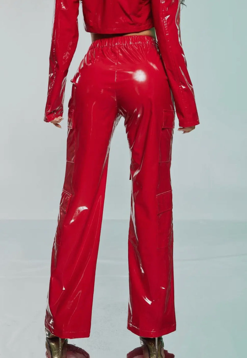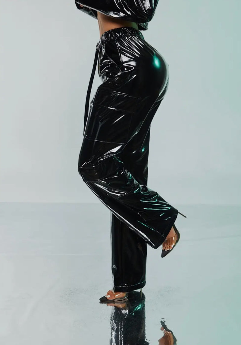 Luxe Shine Faux Leather Biker Cargo Pants by WFFS