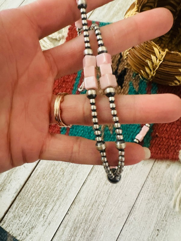 Navajo Queen Pink Conch & Sterling Silver Beaded L