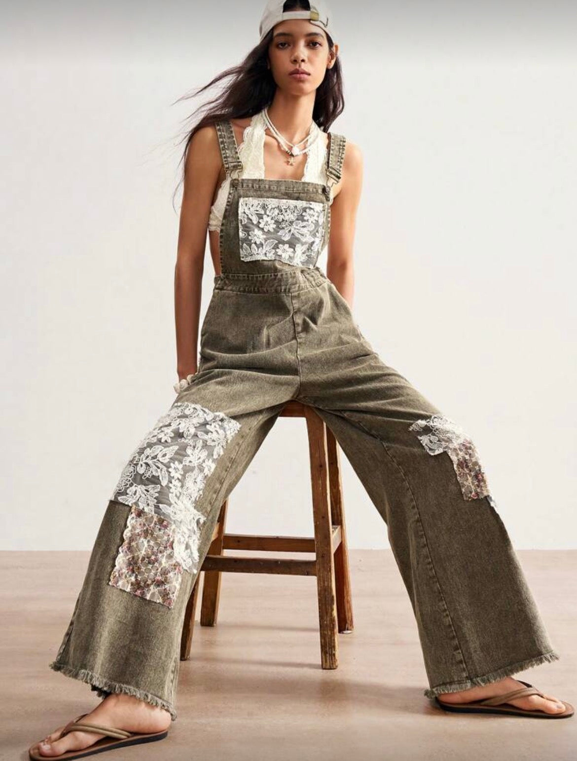 Olive Denim Jumpsuit Floral PocketThe Olive Denim Jumpsuit with a floral pocket is designed for both style and functionality. The denim fabric offers durability and ease of movement, while the floral pocket adds a distinctive aesthetic touch. This jumpsuit is suitable for various occasions, providing comfort without sacrificing elegance.