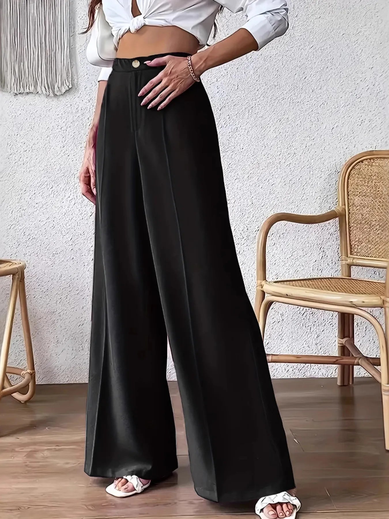 - These black high waist wide leg pants provide a fashionable yet comfortable option for any occasion. With a flattering high waist design, they offer both style and functionality. Made from high quality materials, these pants are durable and long-lasting. Perfect for any wardrobe.