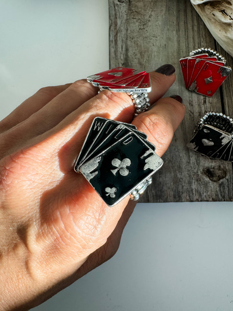 Western Ajustable Ring - Spade Clover Heart Diamond