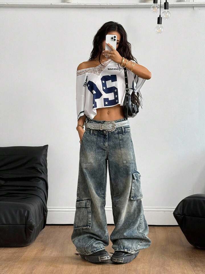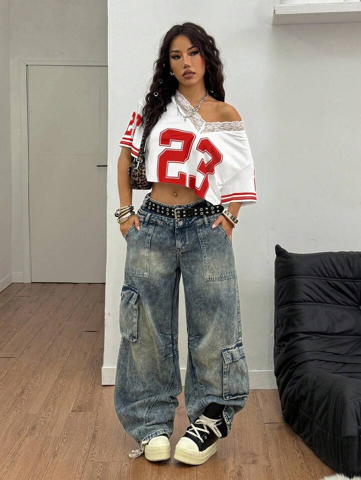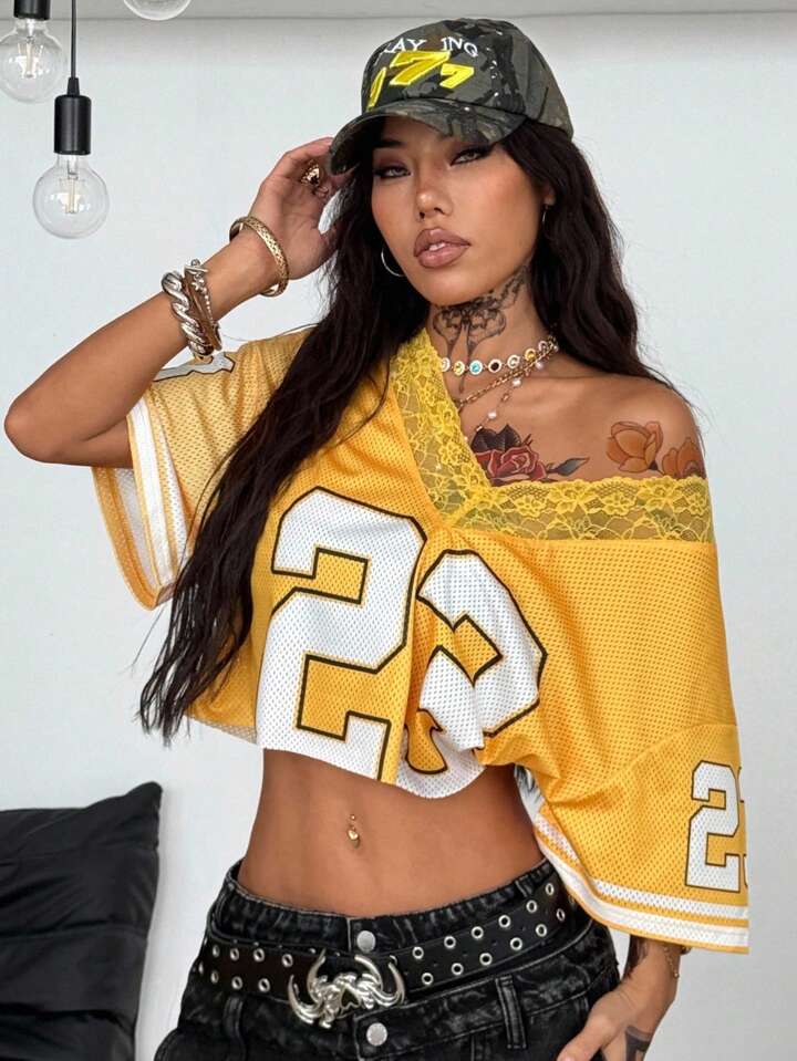 Star 24 Genius Lace Trim Crop Top Mesh Jersey by Coolane