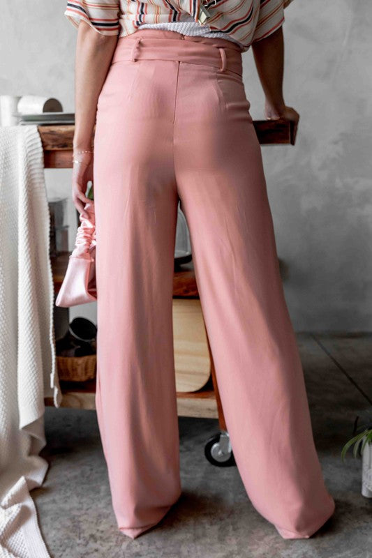 The ultimate office comfort staple. Wide-leg grey trousers featuring a high waist and matching belt. Pair with a t-shirt or blouse for a business-casual look.