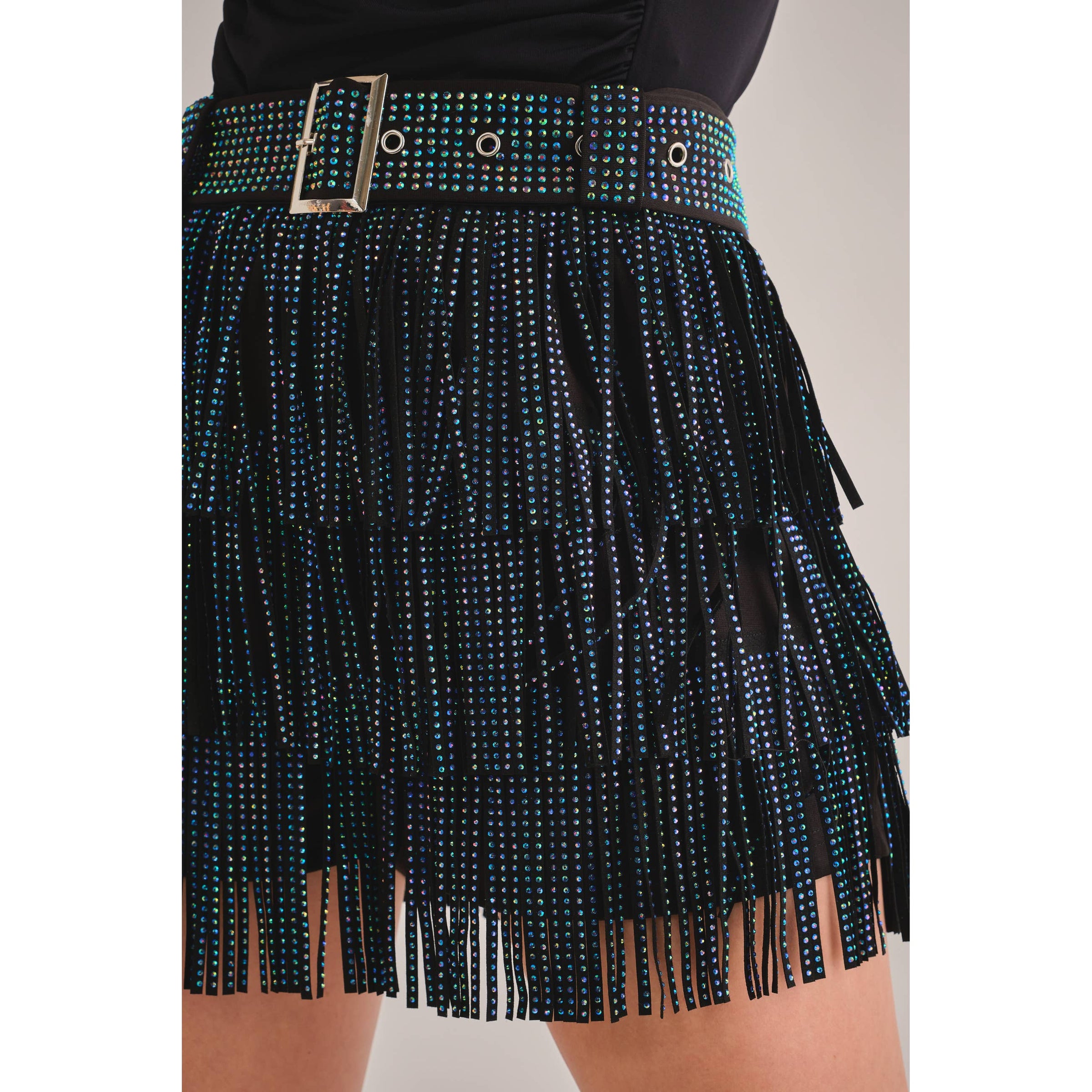 Embellished Faux Suede Western Fringe Skort Skirt Black